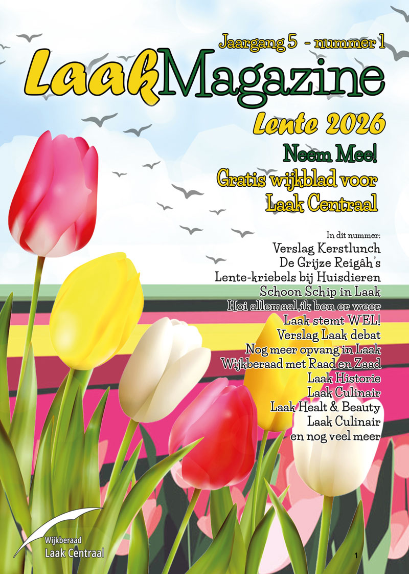 Het LaakMagazine verschijnt 4 x per jaar en is het “clubblad”van het wijkberaad, maar het is natuurlijk veel meer dan dat. Het LaakMagazine staat bomvol met artikelen over gezondheid, over nieuwbouw projecten in de wijk, over groen, terug- én vooruitblikken op evenementen in de wijk, weetjes en nieuwtjes en heel veel bijdragen van onze sociale partners, een agenda, een puzzelpagina en een kinderhoekje met leuke prijzen. Kortom interessant een heerlijk leesbaar magazine met voor elk wat wils. Strak en professioneel uitgevoerd met mooie foto’s en afbeeldingen op mooi glossy papier. Een blad dat op geen enkele Laakse leestafel mag ontbreken.